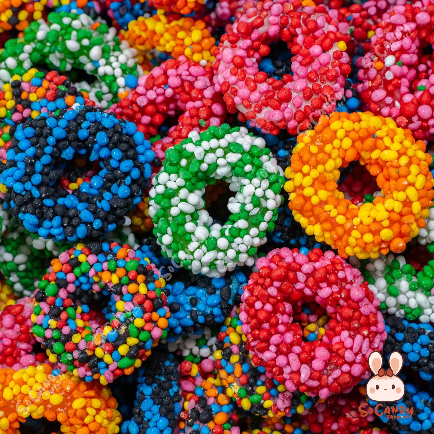 Ingrédients : Sucre, sirop de glucose, eau, farine de riz, dextrose, gélatine enrobée Halal, acidifiants : E296, R350ii, sirop de sucre inverti, gélifiant : E440, acidifiant : E330, arômes, agent d'enrobage : E414, colorants : E102, E122, E129, E133, E153